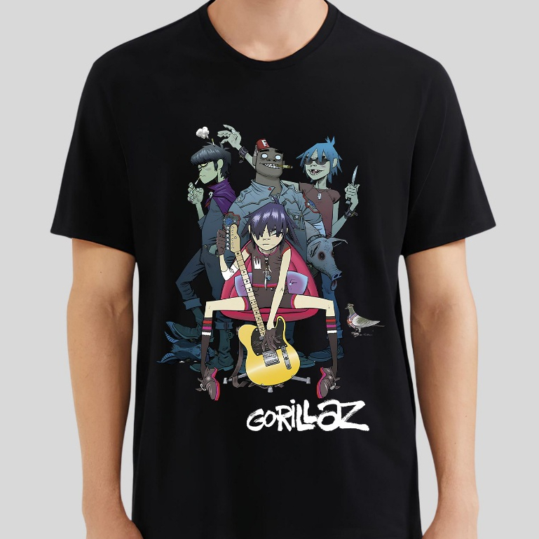 Camiseta Gorillaz Banda Hip Hop Camisa 100% Algodão Unissex Preta Estampada