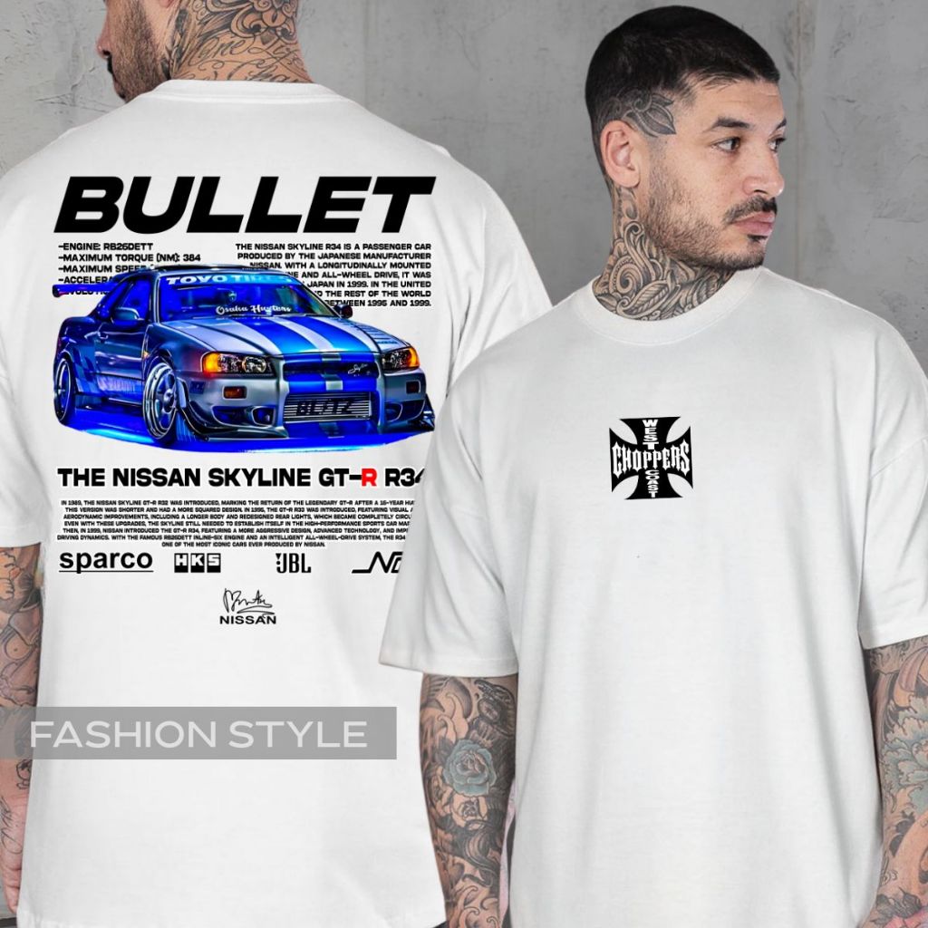 Camiseta Gtr R34 Carro Brian O'Conner Bullet Choppers Paul Walker Skyline Velozes Toretto Furiosos Jdm