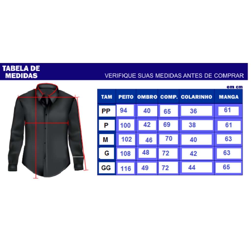 Tabela rápida para você comparar este item com outros similares de Camisas dentro do nosso catálogo.