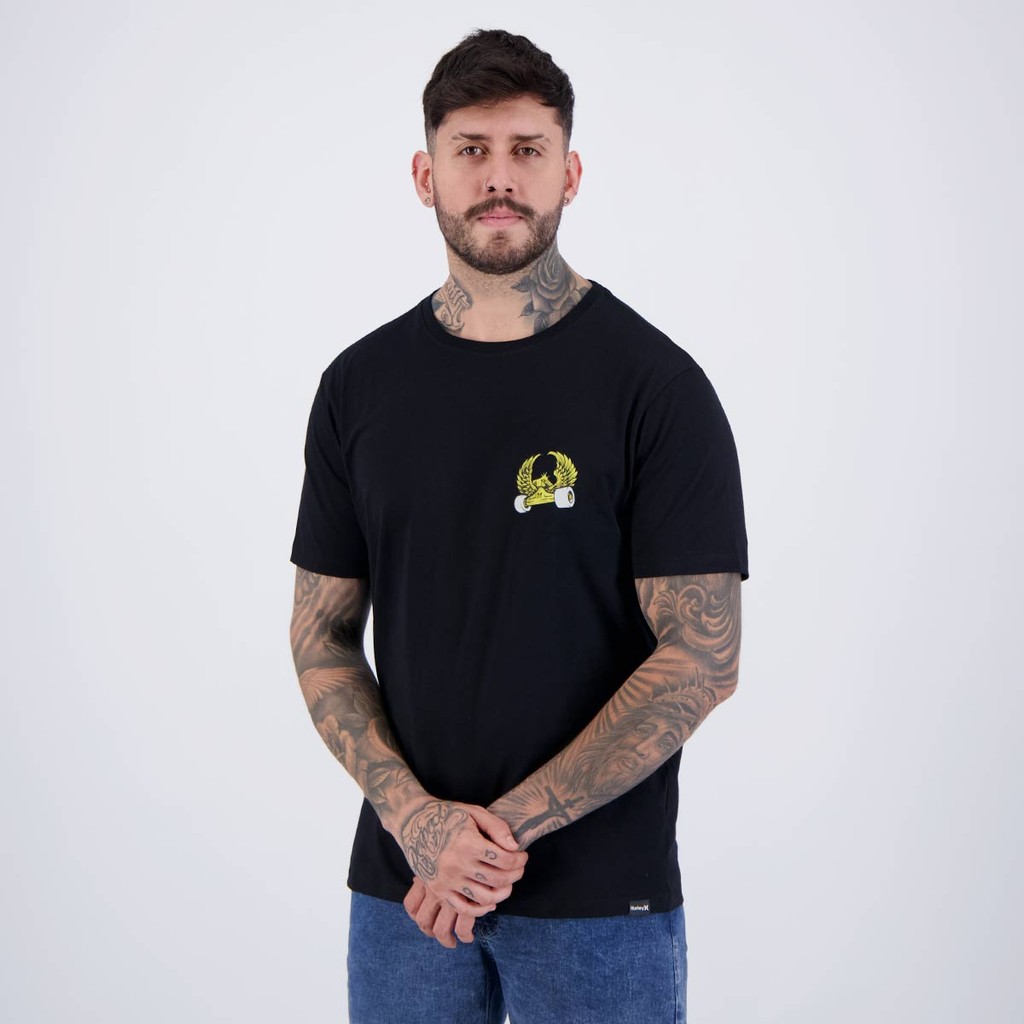 Composição: 100% Algodão Cor predominante: Preto Indicado para: Casual Gênero: Masculino Origem: Nacional Logo: Estampada Manga: Curta Gola: Careca Dimensões aproximadas (A x L): P: 73 x 52 cm M: 75 x 54 cm G: 77 x 56 cm GG: 79 x 58 cm