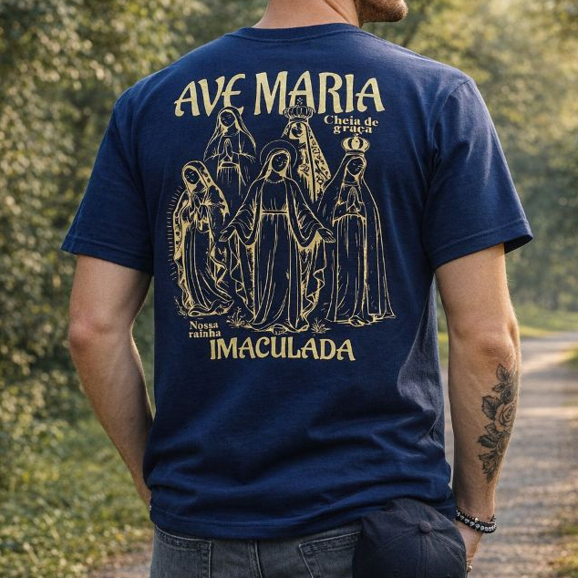 Camiseta Imaculada Ave Maria Nossa Senhora Cristã Fé Catolica 100% algodão
