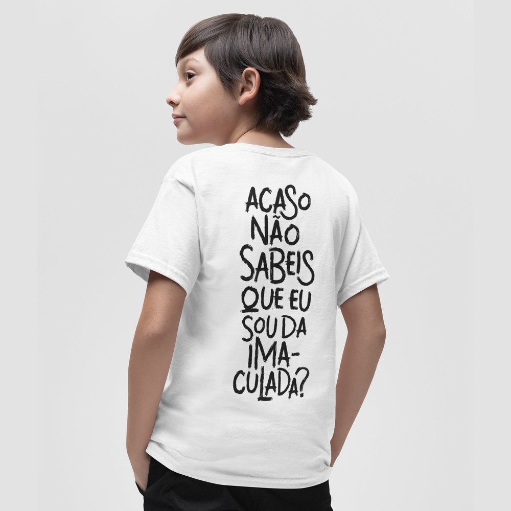 Camiseta Infantil Acaso Não Sabeis Que Sou da Imaculada Blusas Católicas Moda Cristã