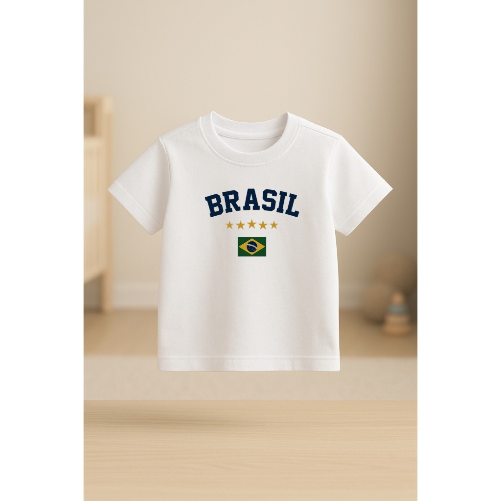 Vista as crianças com conforto, estilo e muito orgulho do Brasil! A Camiseta Infantil Brasil Amarela é perfeita para o dia a dia, passeios, escola, jogos, Copa do Mundo e também para presentear. Fabricada em algodão macio, ela oferece conforto, leveza e ótima durabilidade, além de ter uma estampa moderna que não desbota com facilidade. ️ Características: Tecido: Algodão confortável Estampa: Brasil com bandeira Gola: Careca (redonda) Manga: Curta Modelagem: Unissex Cores vivas e material de alta qualidade Não esquenta e não irrita a pele ️ Ideal para: Uso diário Festas e passeios Jogos do Brasil Copa do Mundo Presente infantil Envio rápido e seguro! Produto de excelente custo-benefício! MEDIDAS E RECOMENDAÇÕES DE IDADE: 2 - Tamanho 2 de camiseta (Recomendado para crianças de 18 meses a 2 anos) 4 - Tamanho 4 de camiseta (Para crianças de 2 a 4 anos) 6 - Tamanho 6 de camiseta (Para crianças de 4 a 6 anos) 8 - Tamanho 8 de camiseta (Para crianças de 6 a 8 anos) 10 - Tamanho 10 de camiseta (Recomendado para crianças de 8 a 10 anos) E assim sucessivamente!