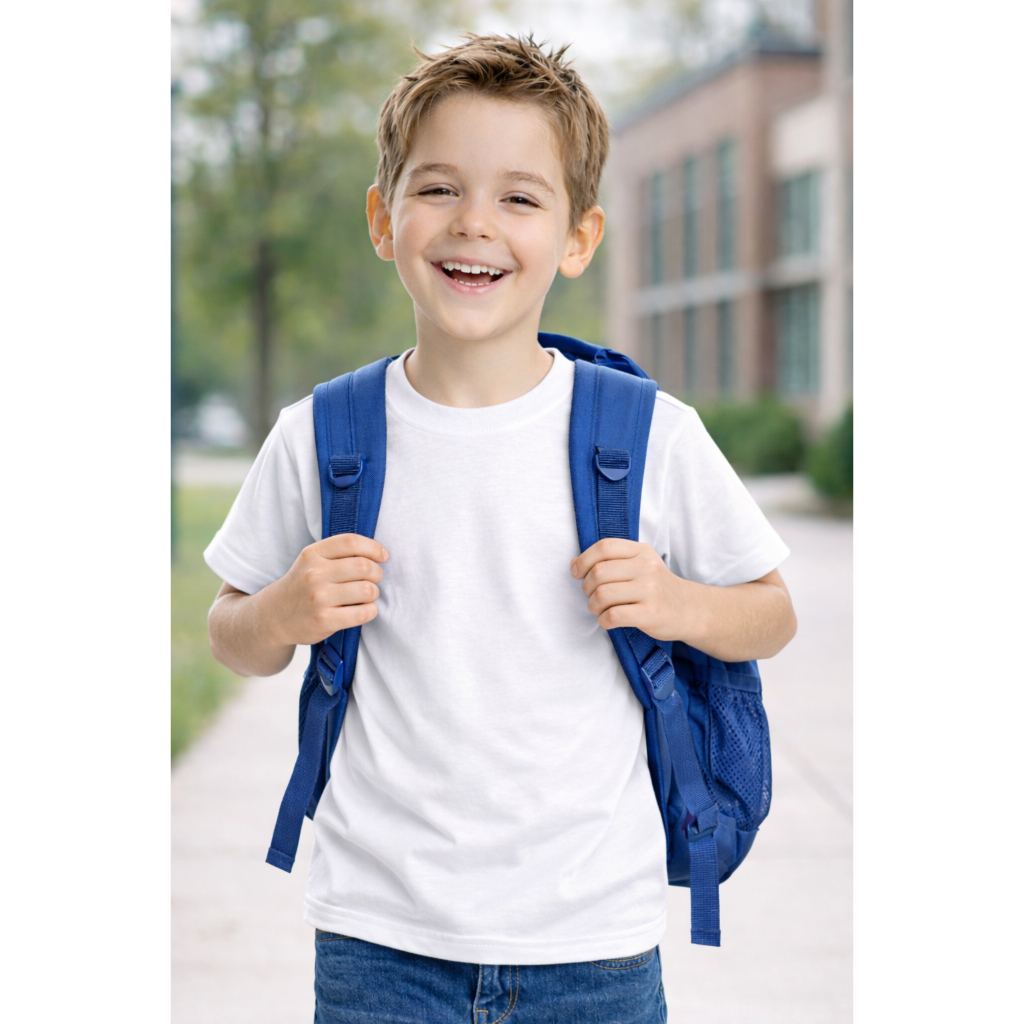 Camiseta Infantil Branca Poliéster para Sublimação – Lisa, Confortável, Ideal para Festas e Uniforme Escola