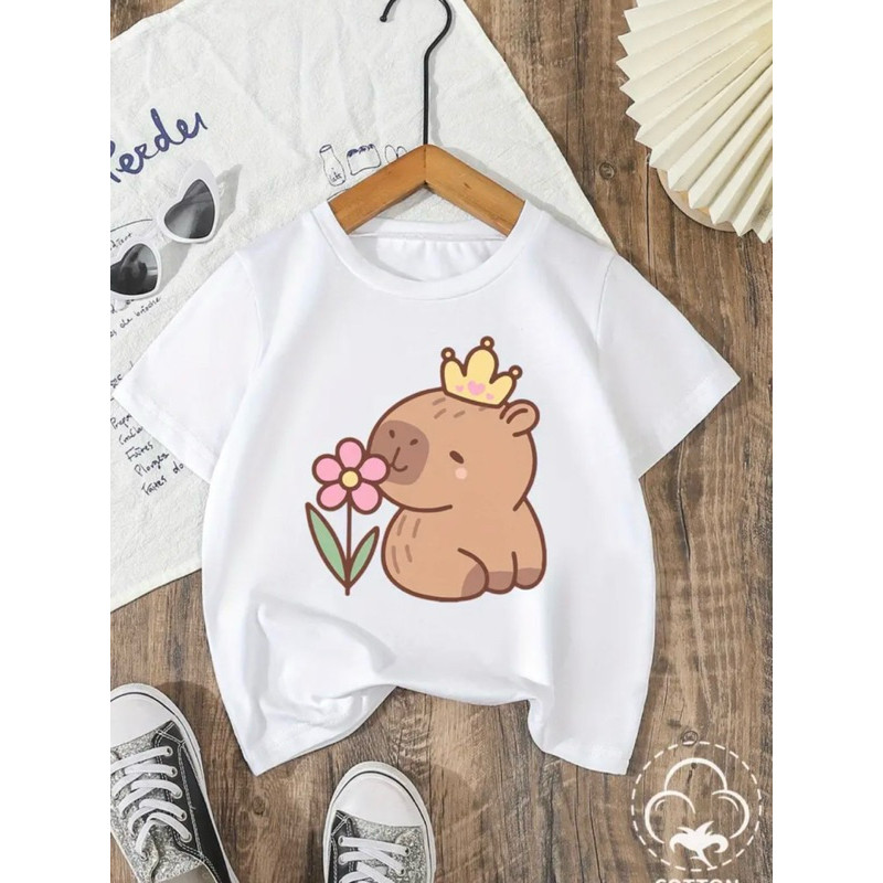 Camiseta Infantil Capibara Básica 100% Algodão Capivara Flor
