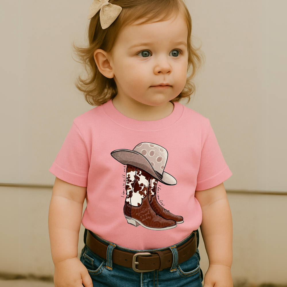 Camiseta Infantil Country Estampa Bota e Chapéu Feminina Menina Manga Curta Moça Menina Escola Roça