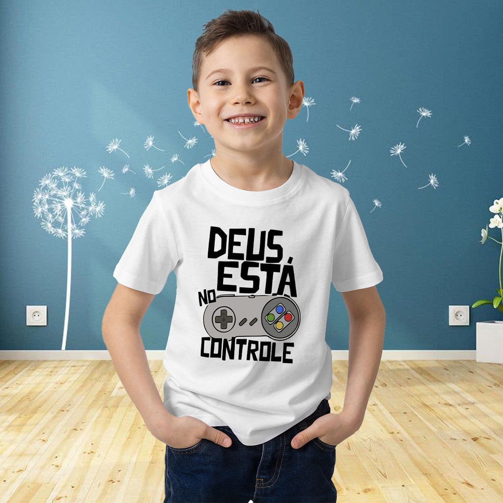 Camiseta Infantil Deus Está No Controle Católica Evangélica Louvor