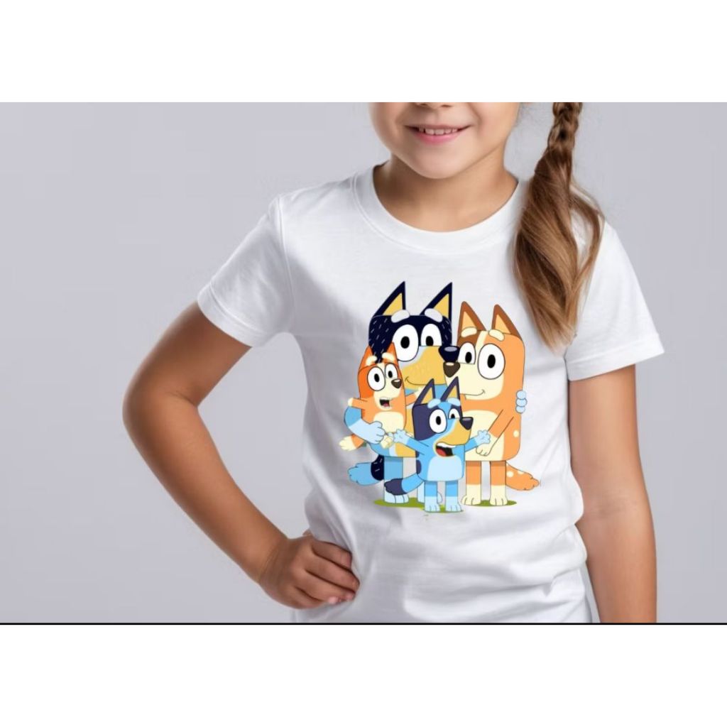 Camiseta Infantil Estampada Blu e Bingo Manga Curta Tecido Leve