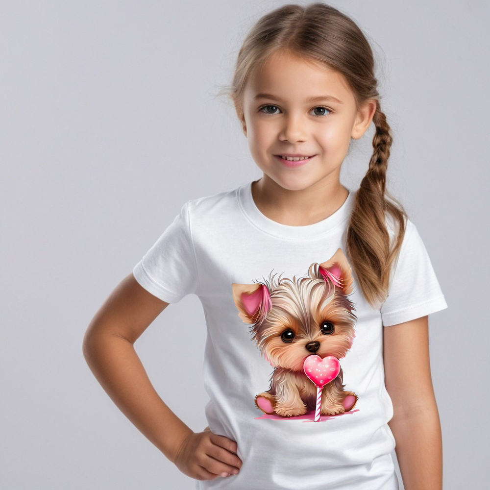 Camiseta Infantil Estampada Cachorrinho Fofo 100% Algodão Confortavel
