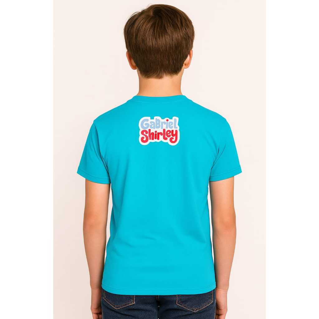 CAMISETA INFANTIL GABRIEL E SHIRLEY JUVENIL ADULTO 100% ALGODÃO UNISSEX AZUL YOUTUBER CAMISA GASHI