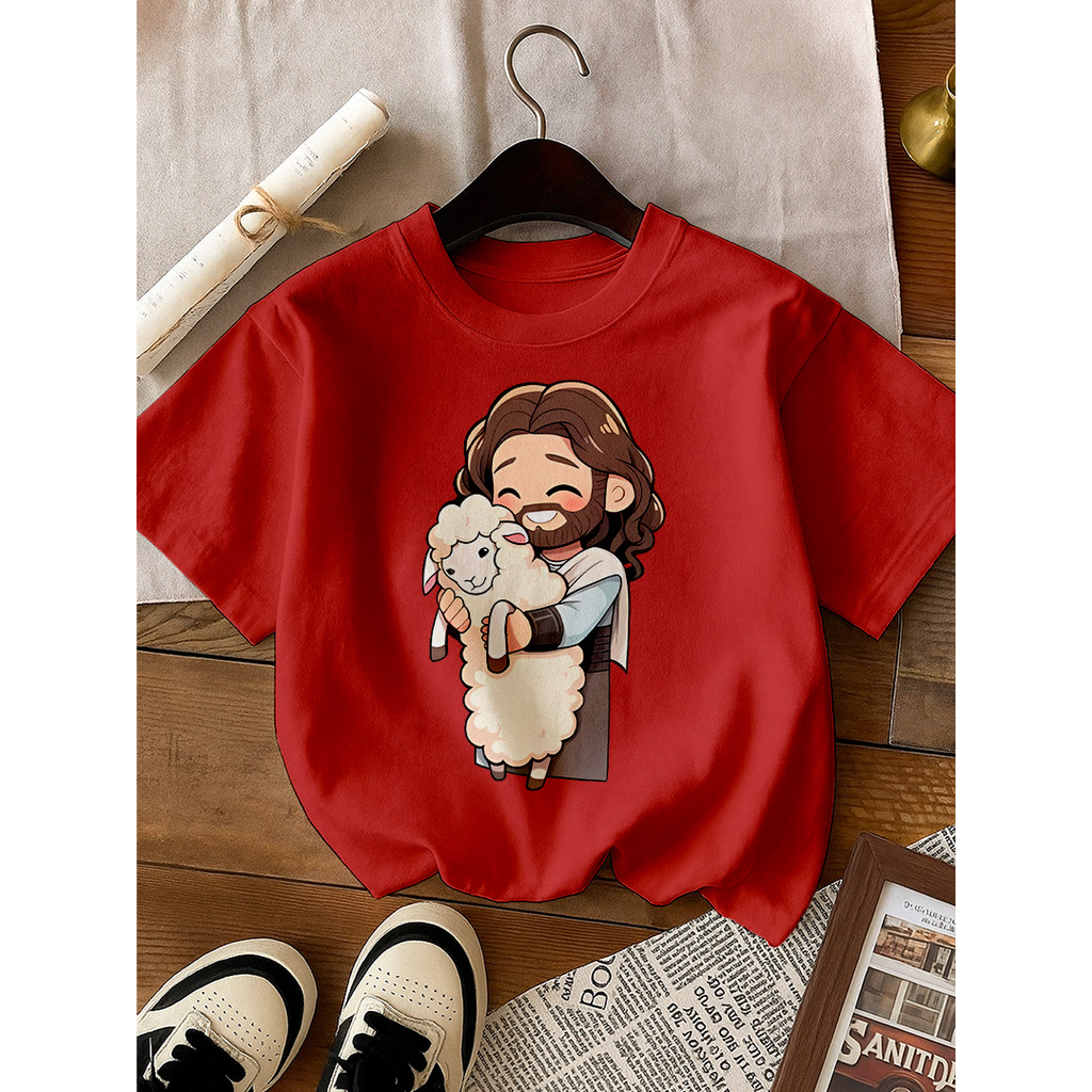 Camiseta Infantil Jesus e o Rebanho 100% Algodão Fofo Estampa Religiosa