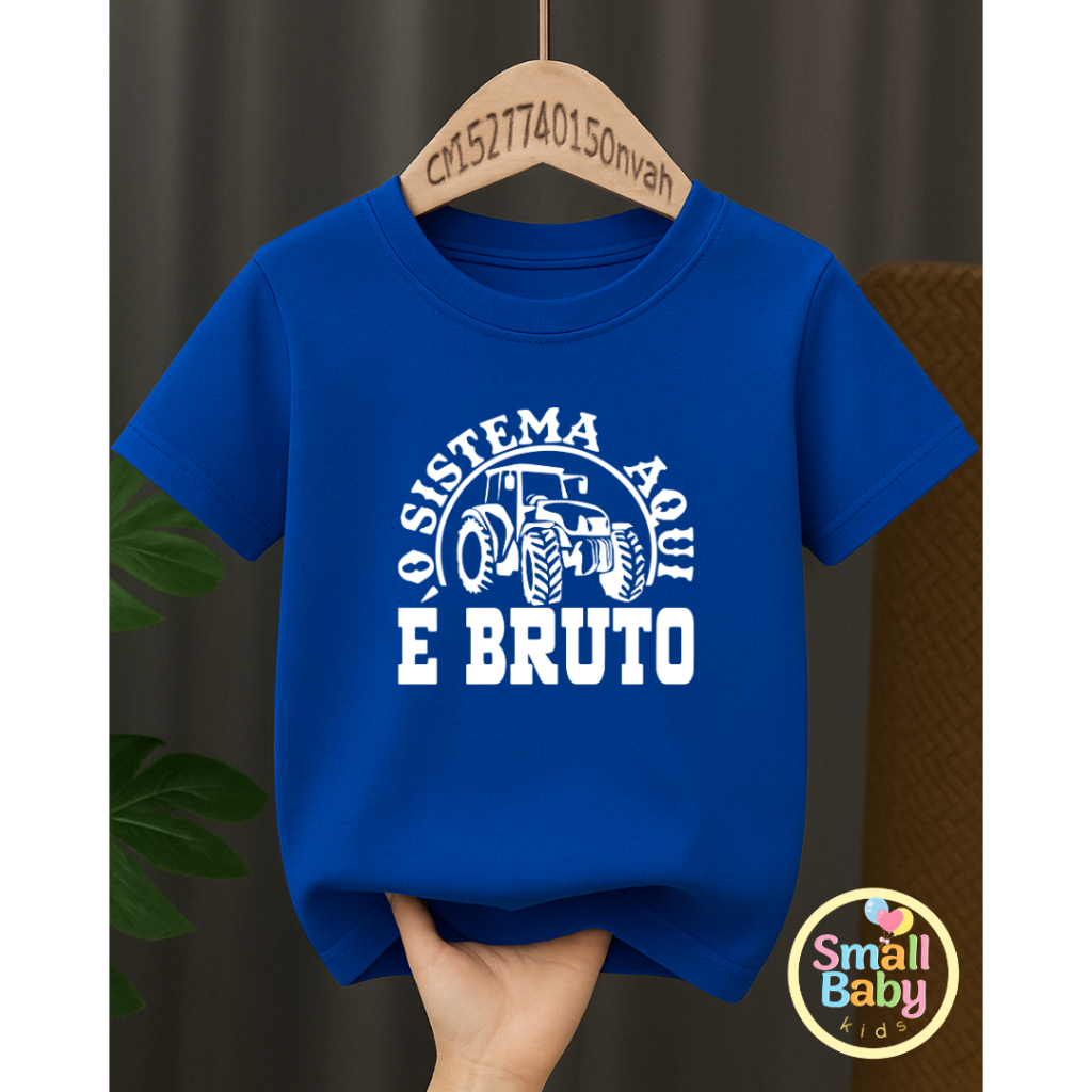 Camiseta Infantil Juvenil Unissex Aqui o Sistema é Bruto Moda Country Cavalgada Moda Gringa