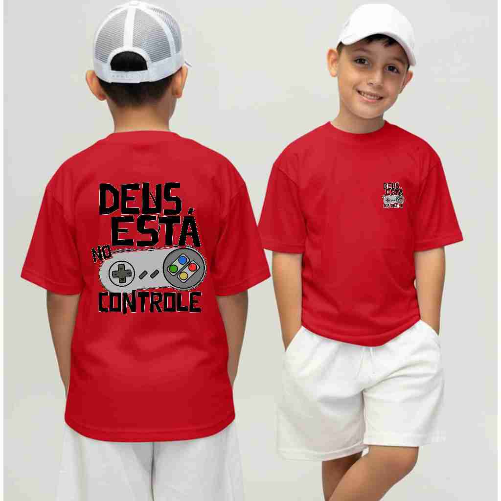 Camiseta Infantil Malha 30.1 100% Algodão Estilosa Camisa Religiosa Jesus Cristo Deus Está Controle