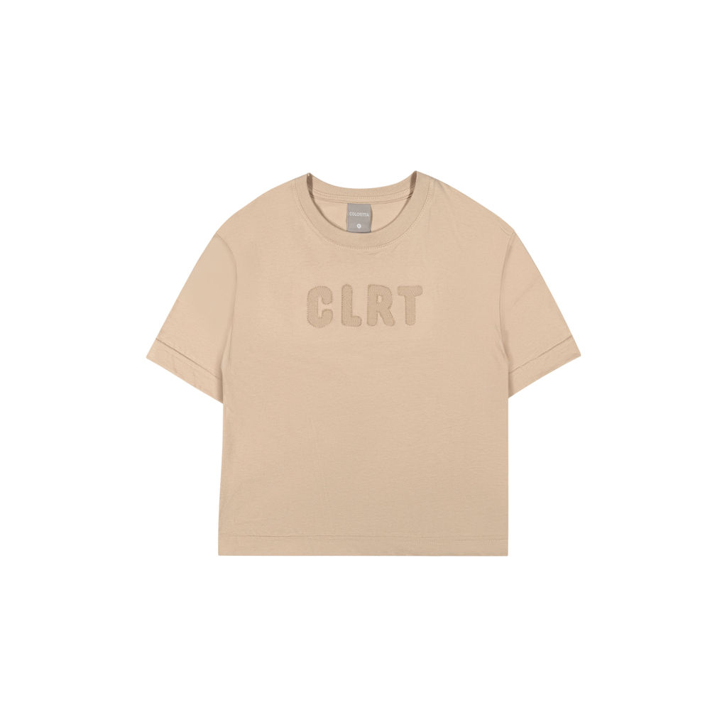 Camiseta Infantil Menino Curta Bordado Colorittá Bege