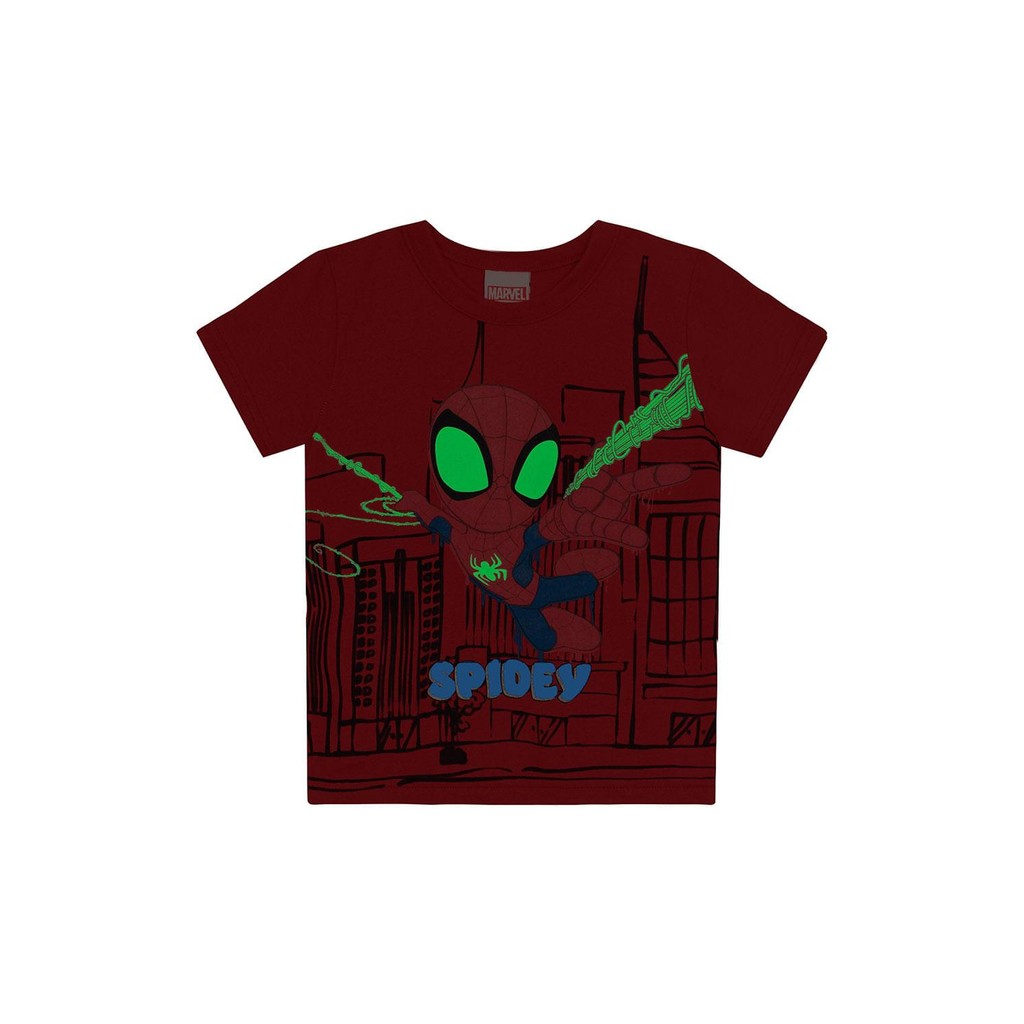 Deixe seu pequeno super-herói ainda mais estiloso com a camiseta infantil masculina da Brandili! Confeccionada em meia malha, essa peça apresenta uma incrível estampa do Homem-Aranha que brilha no escuro, garantindo diversão e charme nas aventuras noturnas. Ideal para o dia a dia, a camiseta proporciona conforto e liberdade de movimento. Combine com shorts ou calças jeans para um look descolado e pronto para qualquer missão!
