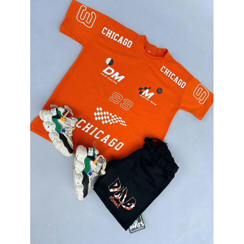 Camiseta Infantil Menino Streetwear Oversized – Algodão Leve, Confortável e Acessível- Camiseta laranja racing
