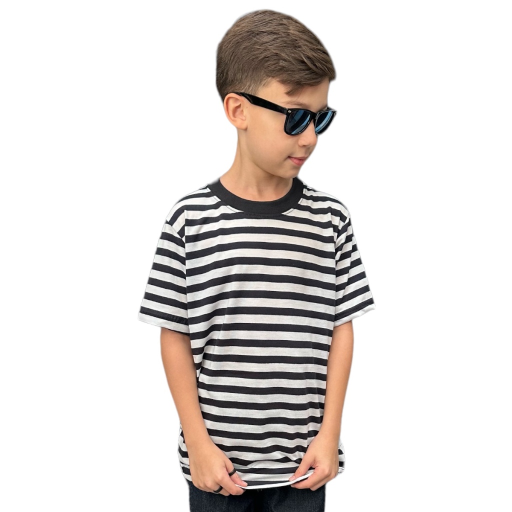 Camiseta Infantil Oversized Listrada Preta Stecchi