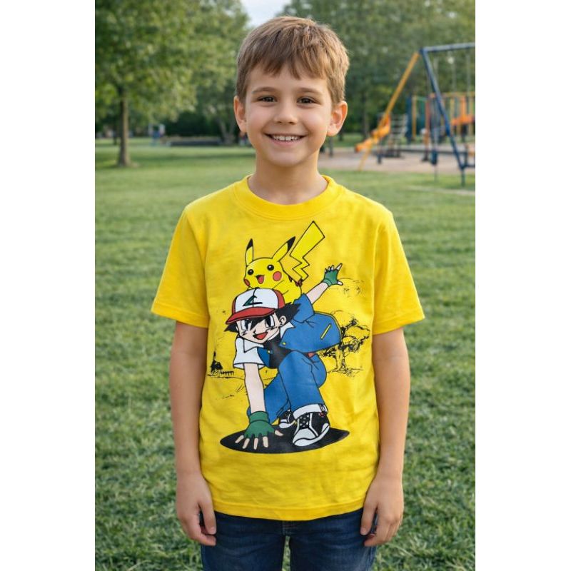 Camiseta Infantil Pokémon Ash Pikachu Manga Curta 100% Algodão tem frete grátis?