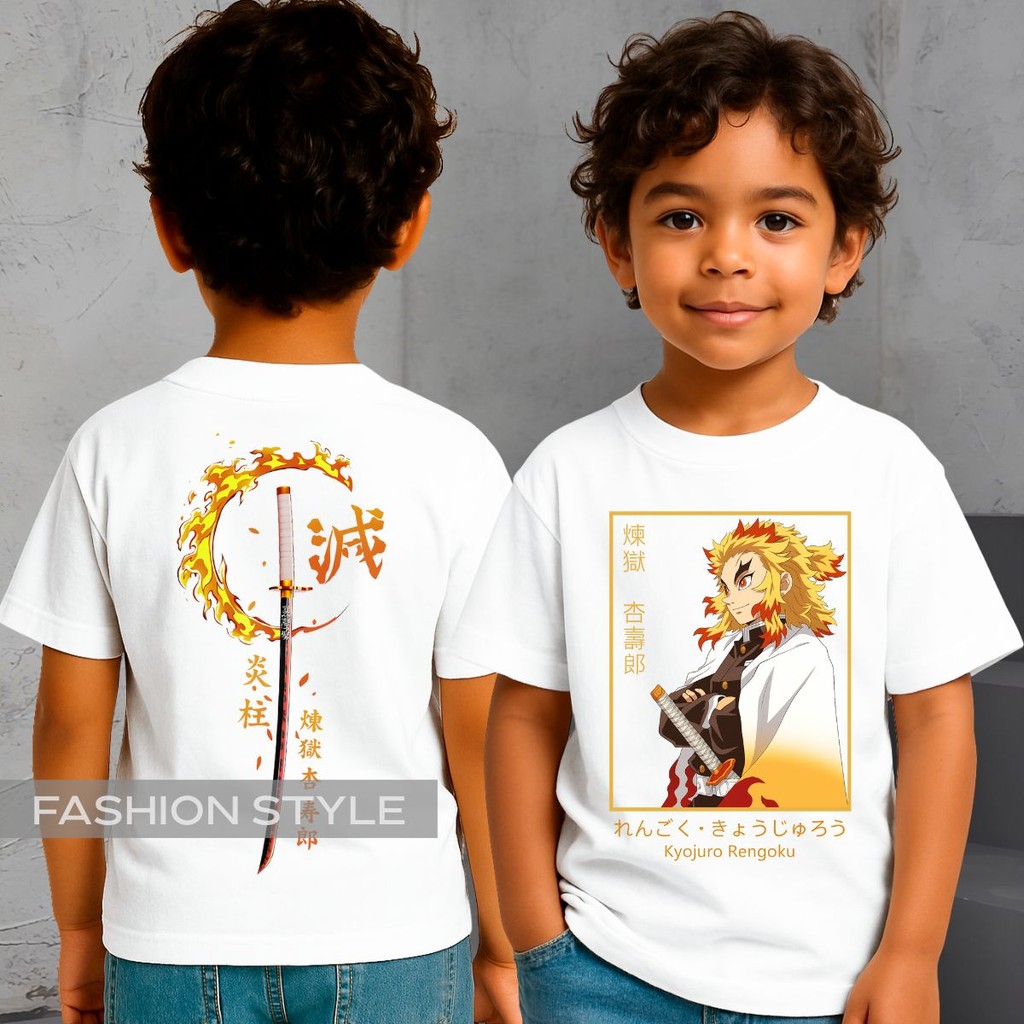 Camiseta Infantil Rengoku Kyojuro Demon Kimetsu Slayer No Yaiba Anime Camisa