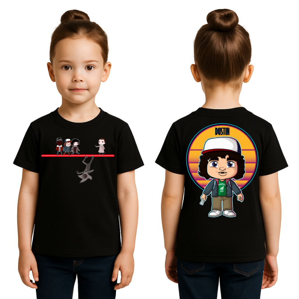 Camiseta Infantil Stranger Dustin – Camisa Moda Kids Manga Curta Estampa DTF Unissex