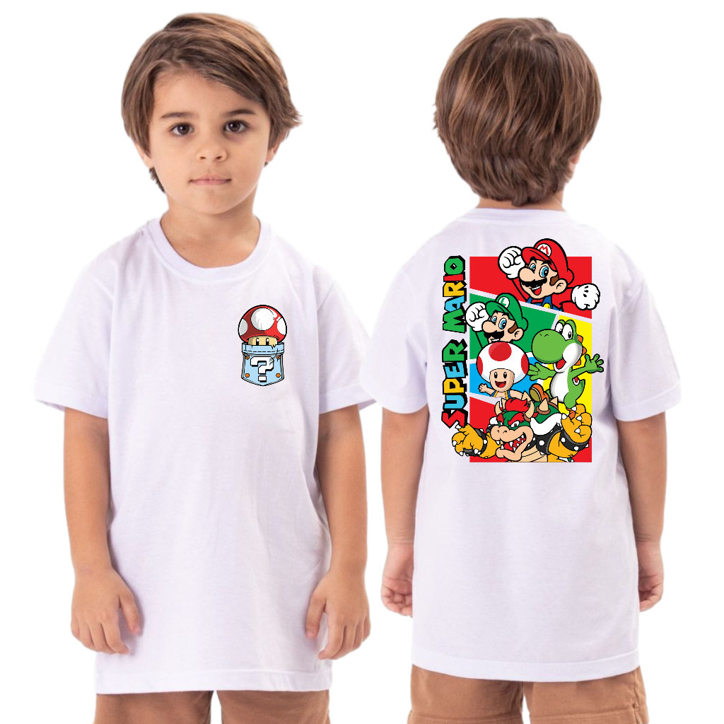 | Camiseta Infantil Streetwear Super Mario Malha 30.1 100% Algodão este produto | R$ 28,94 | 42% | 4.8/5 | — |