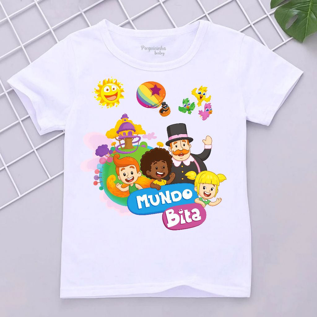 Camiseta Infantil Tema Mundo Bita Personalizado com nome e idade