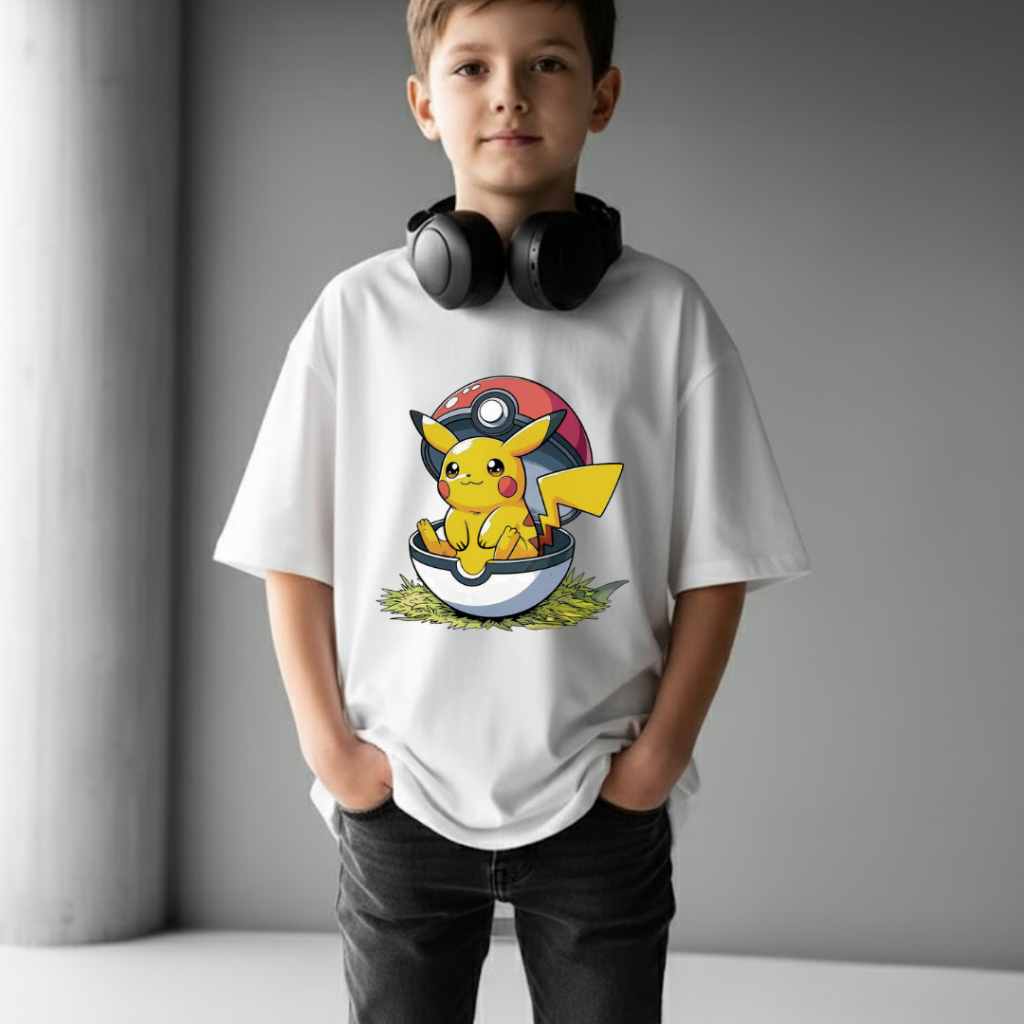 Camiseta Infantil Unissex Masculina Anime Desenho Pokemon Pikachu 100% algodão Muito Macia e Confortável