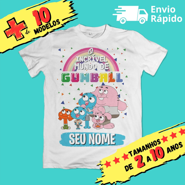 | Camiseta Infantil Unissex O incrivel mundo de gumball Personalizada... este produto | R$ 37,90 | — | 4.9/5 | 5 |