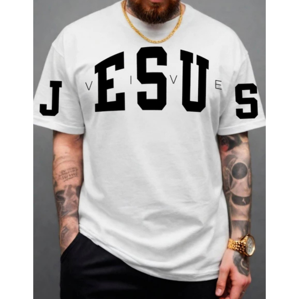 Camiseta Jesus Vive Diverse Manfinity Camisa 100% Algodão T-Shirt Gospel Estampa Grande Streetwear