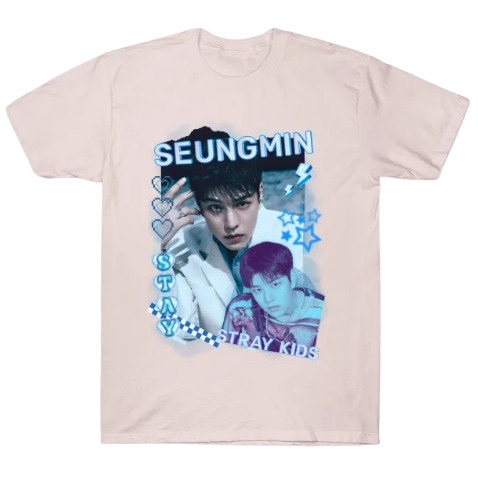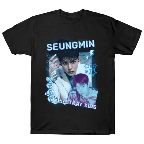 Camiseta Kpop Seungmin Stray Kids Adulto/Infantil Lançamento Unissex Em Algodao