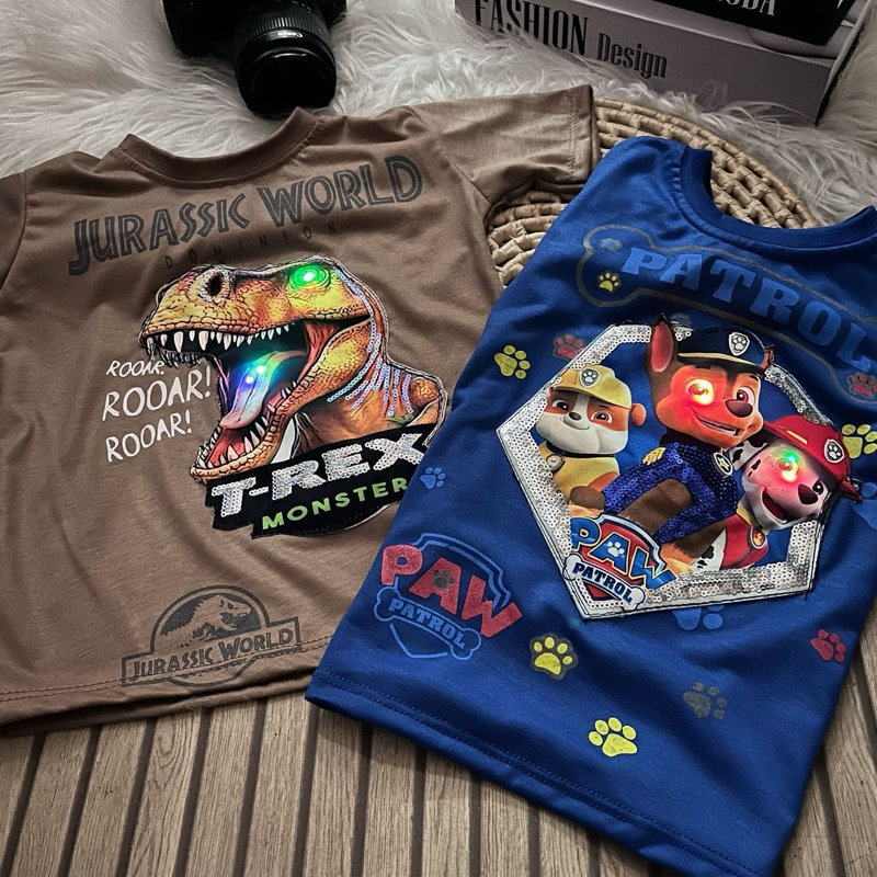 Camiseta Led Dinossauro Jurassic Pisca Pisaca Blusa Menino