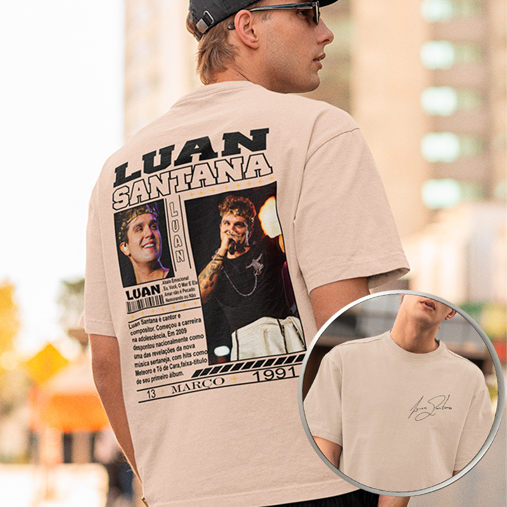 Camiseta Luan Santana Biografia Camisa Sertanejo Artista Unissex Básica Algodão 30.1 Premium