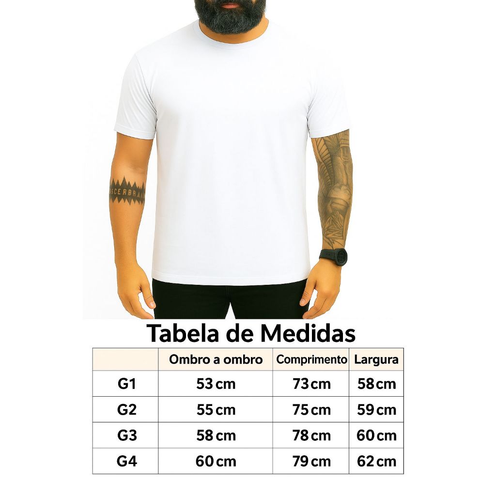 ATENÇÃO! Confira a tabela de medidas antes de comprar para evitar trocas e devoluções. Tabela de medidas PLUS SIZE nas imagens. Camiseta Peruana Cotton 40.1 Toque extremamente macio e estilo clean — perfeita para o dia a dia. O tecido 40.1, reconhecido por sua durabilidade, deixa a peça resistente sem perder flexibilidade. Tecido premium Peruano 40.1 (fino e durável) Caimento firme com elastano — mantém formato mesmo após várias lavagens Costura reforçada — ideal para uso frequente Disponível em cores neutras essenciais (Branco, Preto, Bege) Dica de uso: Combine com jeans para um look moderno e minimalista. TAMANHOS: P - M - G - GG - G1 - G2 - G3 - G4