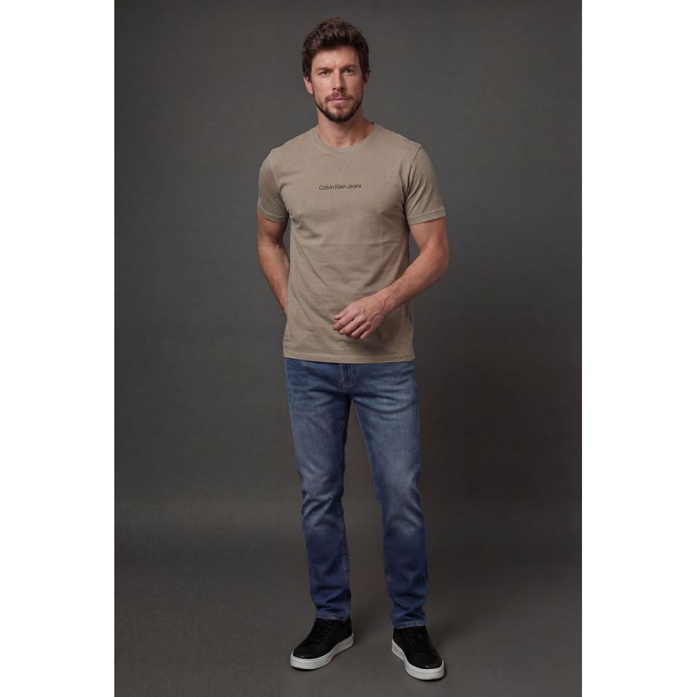 Camiseta Calvin Klein Jeans manga curta de meia malha, gola ribana, e estampa exclusiva da marca. Modelagem básica. Ideal para compor produções versáteis, do casual ao sofisticado.