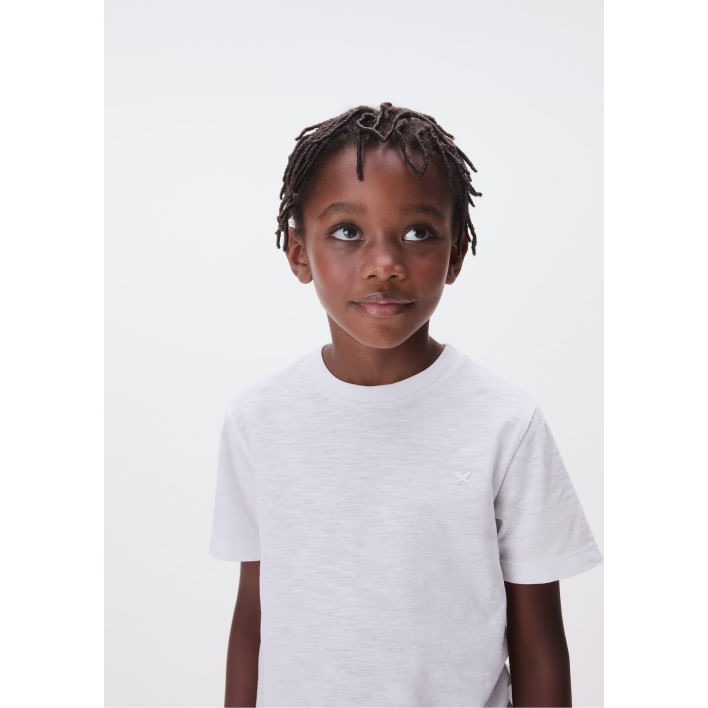 Camisa infantil com manga curta e modelagem regular em meia malha flamê. Possui decote redondo em ribana, cobre gola e patch de aplicação de peixe Hering emborrachado na cor da peça. Detalhes da peça:Malha de algodãoModelagem regularDecote em ribanaBordado no peitoManga curta