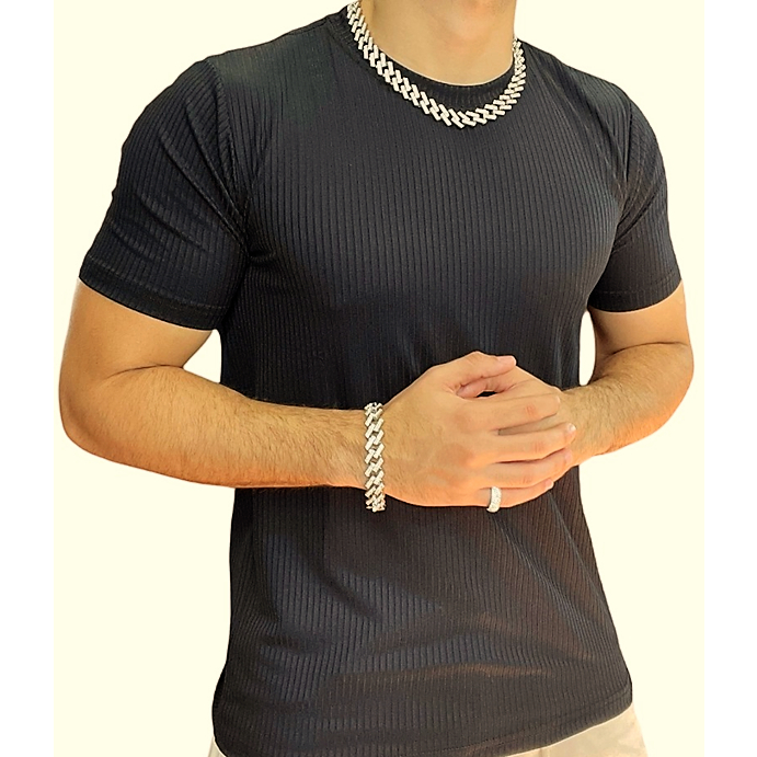 Camiseta Masculina Básica Manga Curta malha Canelada Lançamento
