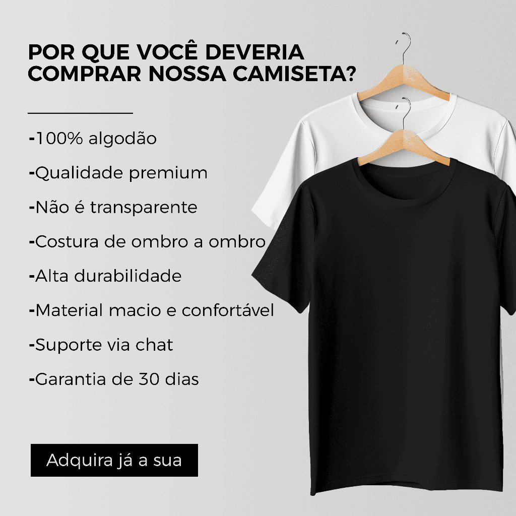 Camiseta Básica 100% Algodão Fio 30.1 (Em caso de dúvida, compre um número maior) Uma Camiseta de Algodão Estampada é o Conforto, Estilo e Qualidade que Você Merece! Disponível em diversos tamanhos, garantindo o ajuste ideal para cada corpo: P - Altura 64 cm | Largura 48 cm | Manga 17 cm M - Altura 67 cm | Largura 50 cm | Manga 20 cm G - Altura 70 cm | Largura 52 cm | Manga 21 cm GG - Altura 72 cm | Largura 54 cm | Manga 21,5 cm Composição: -100% algodão -Fio 30/1 penteado -Estampa DTF de alta qualidade, não desbota > Por que escolher nossa camiseta? -Conforto inigualável: Tecido leve, macio e confortável. -Durabilidade excepcional: Mantenha a qualidade mesmo após o uso frequente. -Estampa de alta definição: Detalhes nítidos que destacam seu estilo único. -Versatilidade garantida: Perfeita para qualquer ocasião, do casual ao urbano. -Enviamos em até 24horas > Compre agora e leve mais conforto e estilo para o seu dia a dia! Dúvidas? Entre em contato com a gente!
