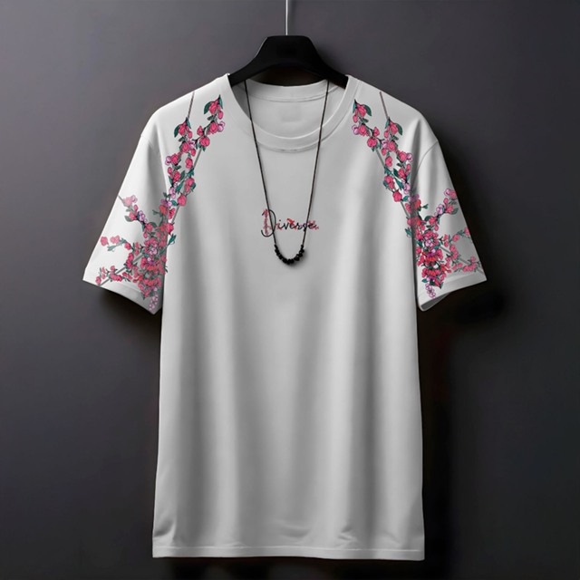 Camiseta Masculina BRISA DE PRIMAVERA Camiseta Flores Street Wear 100% Algodão