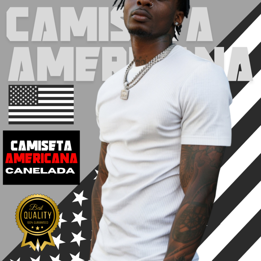 Camiseta Masculina Canelada estilo Americana RAPPER Blusa Camisa Slim Americana Justa Ao Corpo
