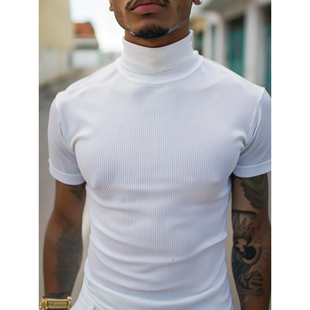 Camiseta Masculina Canelada Gola Alta Slim Estilo Old Money Gringa