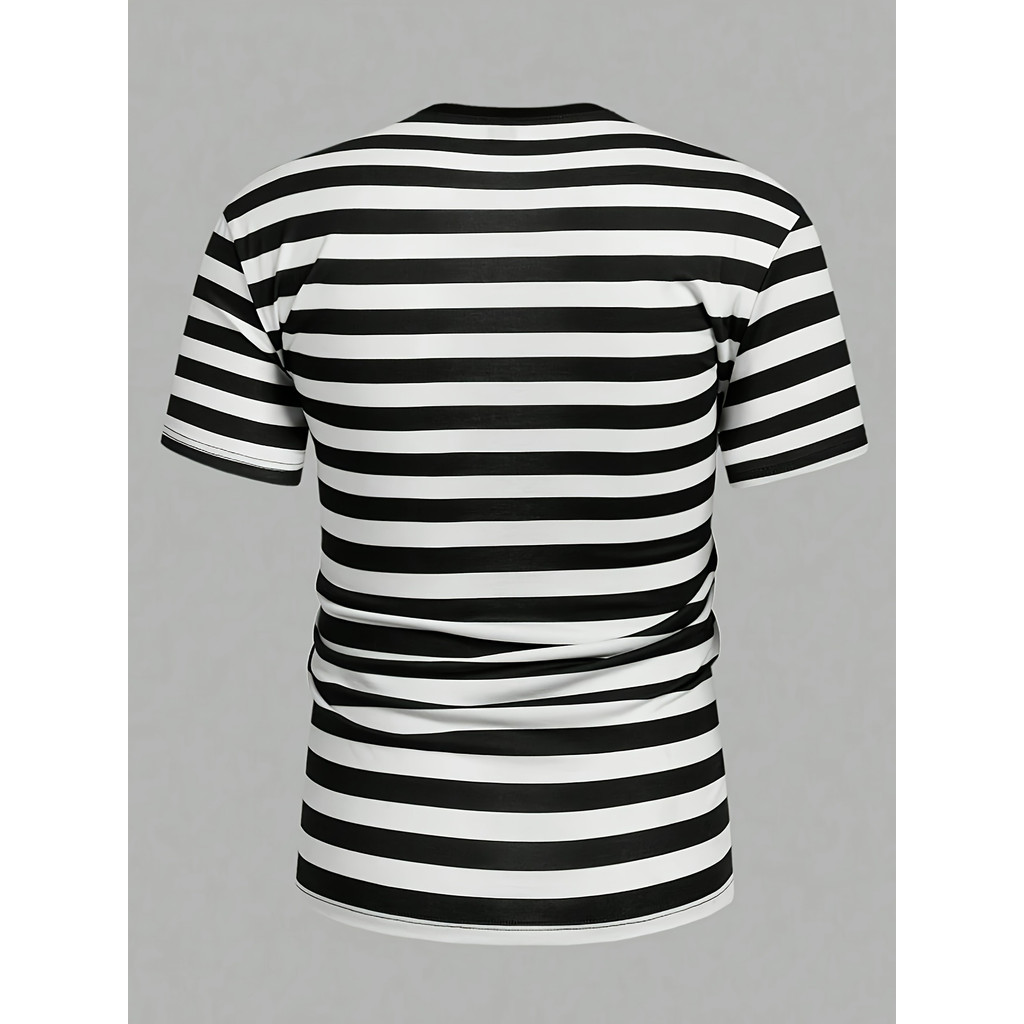 Camiseta Masculina Casual Listrada De Manga Curta , Estampa , Top De Poliéster Com Gola Redonda , Lavável À Máquina , Ad