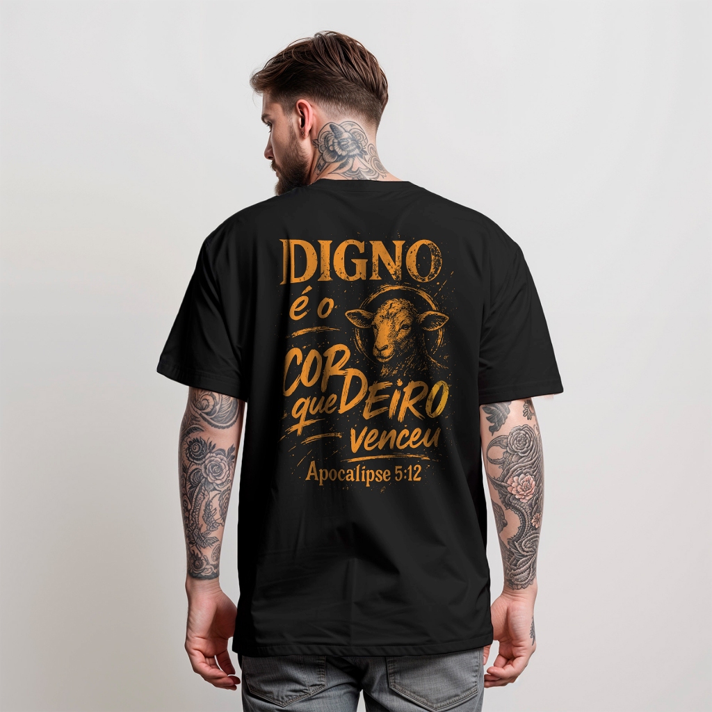 Camiseta Masculina Cordeiro Digno Que Venceu Camisa Moda Evangélica 100% algodão Manfinity
