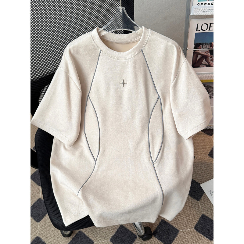 Camiseta masculina de manga curta americana pesada almíscar verão na moda solta meia manga camiseta Design sentido casal