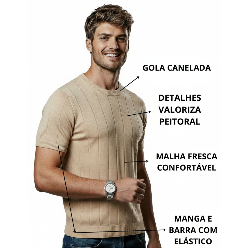 | Camiseta Masculina De Tricot Malha Canelada Slim Básica Camisa Soci... este produto | R$ 69,99 | 13% | 5.0/5 | 9 |