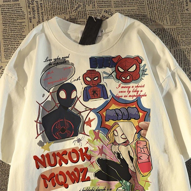 Camiseta Masculina e Feminina de Desenho Animado de Anime Moda Casual Modelos Spider-Man T-shirt
