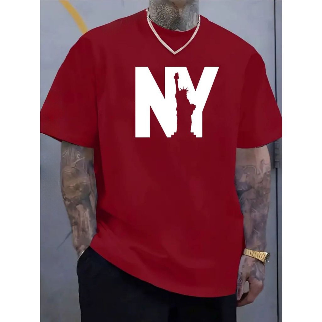 Camiseta Masculina Estatua Ny bco Camisa 100% algodão malha 30.1