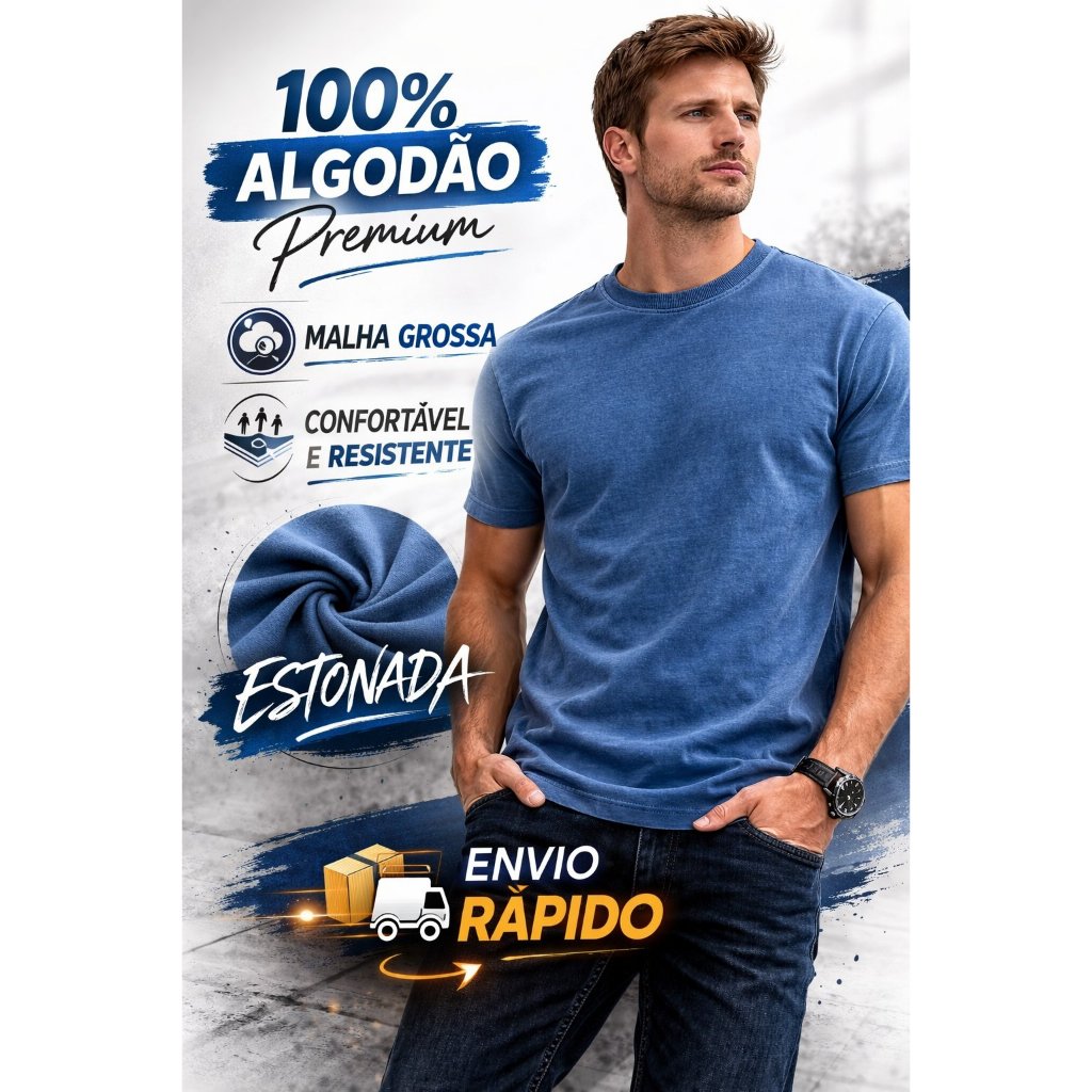 O produto Camiseta Masculina Estonada 100% algodão Lisa é um item na subcategoria Camisetas (de Roupas Masculinas), disponível na Shopee Brasil por R$ 29,90 (25% de desconto sobre o preço original de R$ 39,87). Avaliado em 4.9/5 pelos compradores e 136 unidades vendidas, este produto se destaca pelo excelente custo-benefício.