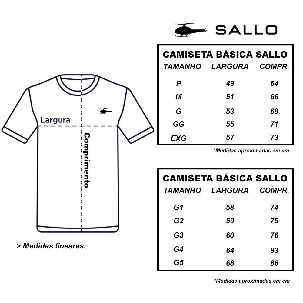 Descrição ================================================================================ Descrição: Camiseta Masculina Premium Sallo Camiseta Premium masculina da marca Sallo, modelo básico, com qualidade impecável. # Não desbota, porque os tingimentos das camisetas são feitos reativamente. # Não cria bolinhas no tecido. # Não precisa passar, pois o tecido tem viscose com elastano. (Slogan da SALLO) “ A SALLO É MASSA, PORQUE NÃO AMASSA”. # Possui revel nas costas, costurada de ombro a ombro, trazendo mais conforto e durabilidade para o produto.