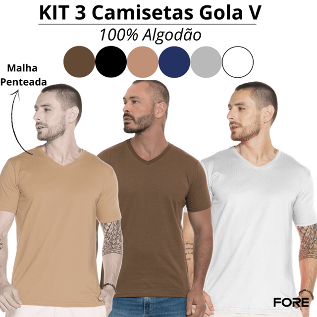 | Camiseta Masculina KIT 3 Básica Gola V Algodão Premium 505254-K3 este produto | R$ 71,99 | 16% | 4.9/5 | 102 |