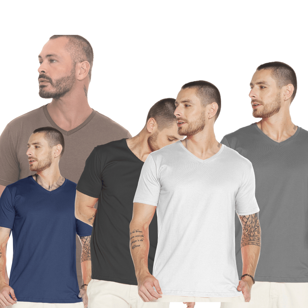 Camiseta Masculina KIT 3 Básica Gola V Algodão Premium 505254-K3